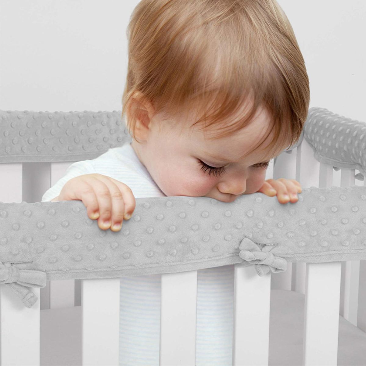 But that's not all! our bed rail serves multiple functions. the thick fabric padding not only protects the crib from scratches during teething but also prevents babies from chewing on the bed rail. it's a win-win situation.