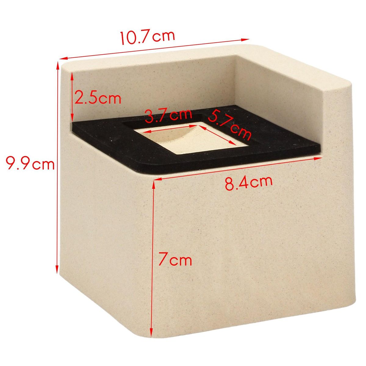 Size:10.2 x 9.4cm outside, 7 x 8.1cm inside, hole 5.7 x 3.7cm