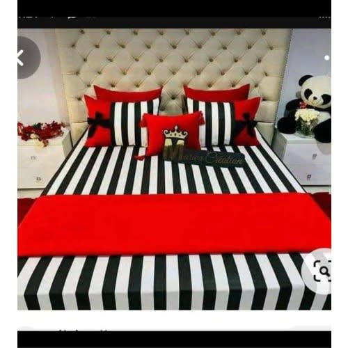 The fabric is made of up durable pure cotton material, very smooth,soft and beautiful. This bedding provides you with a plush luxurious soft touch since they are made of 100 percent cotton. This fabric is soft on your skin, making it an ideal choice if you like to sleep on your side or stomach. This cotton bed sheet is ideal for everyday use and is machine washable in addition to being hand washable. It features a platinum finish technology to keep the colors from fading or dulling. Create a wonderful place to retreat and rest with the help of these soft and luxurious beddings & lrm;.The 6 piece complete bedding set comes with;4 pillow Cases1 bed spread1 Duvet/ComforterAnd Available in various colours