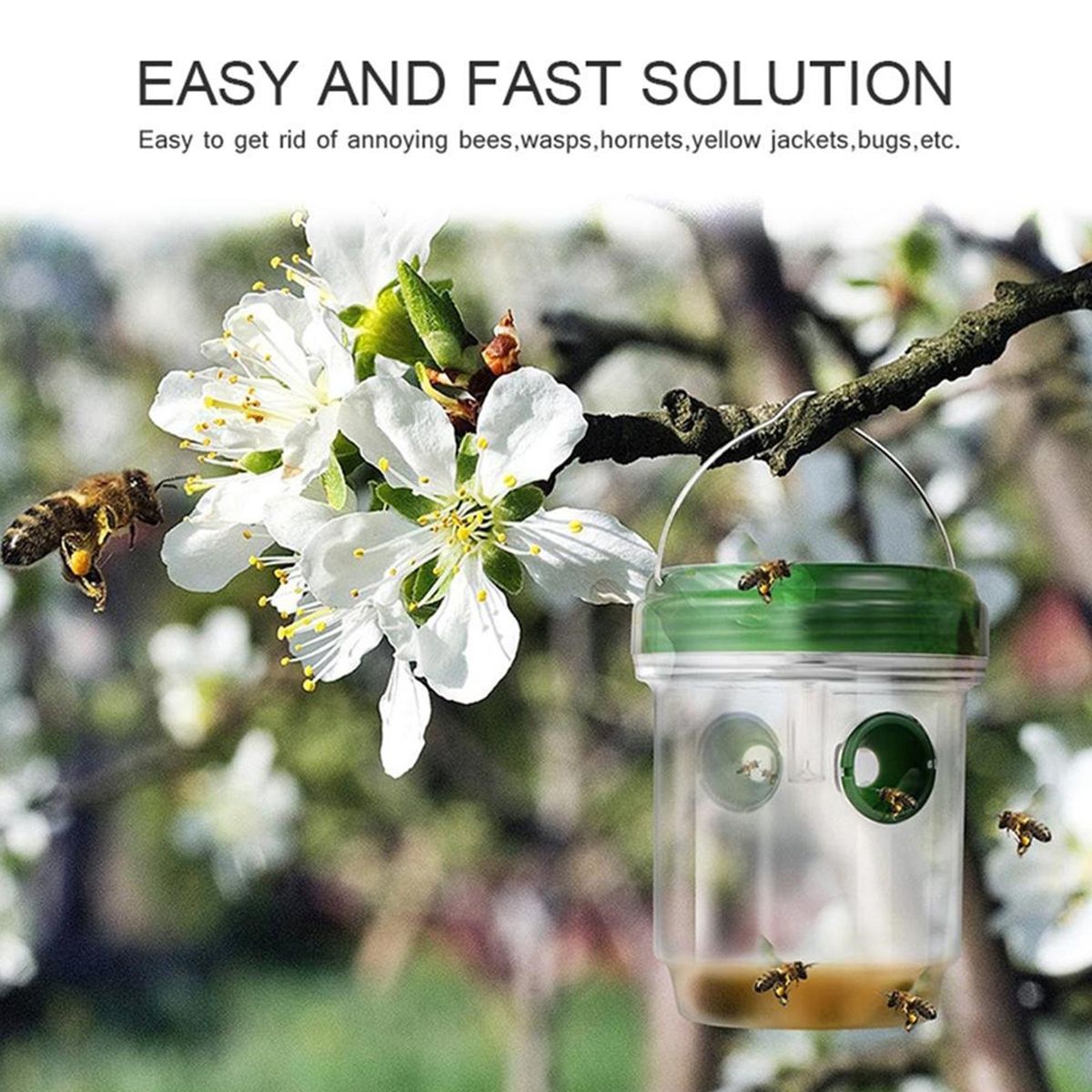 The outdoor hanging wasp trap can be used in multiple seasons to help youdifferent harmful flies in different seasons, it is safe and easy to use and can be poured with honey water, fruit, sugar water or fruit wine to attract bees and wasps.