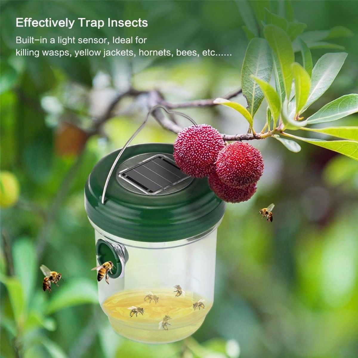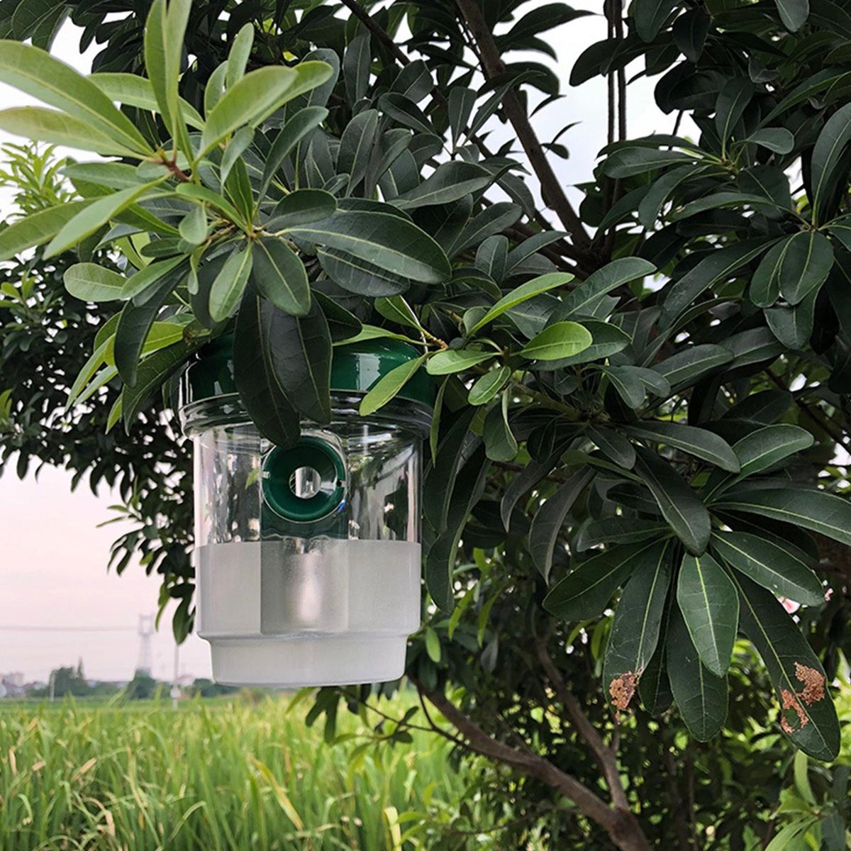 Waspemit a violet light outdoors to attract wasps, thus enhancing the attractiveness of the wasp trap. The wasp trap has two specially designed trapping channels on it, large on the outside and small on the inside, so that when wasps enter the wasp trap they cannot escape.