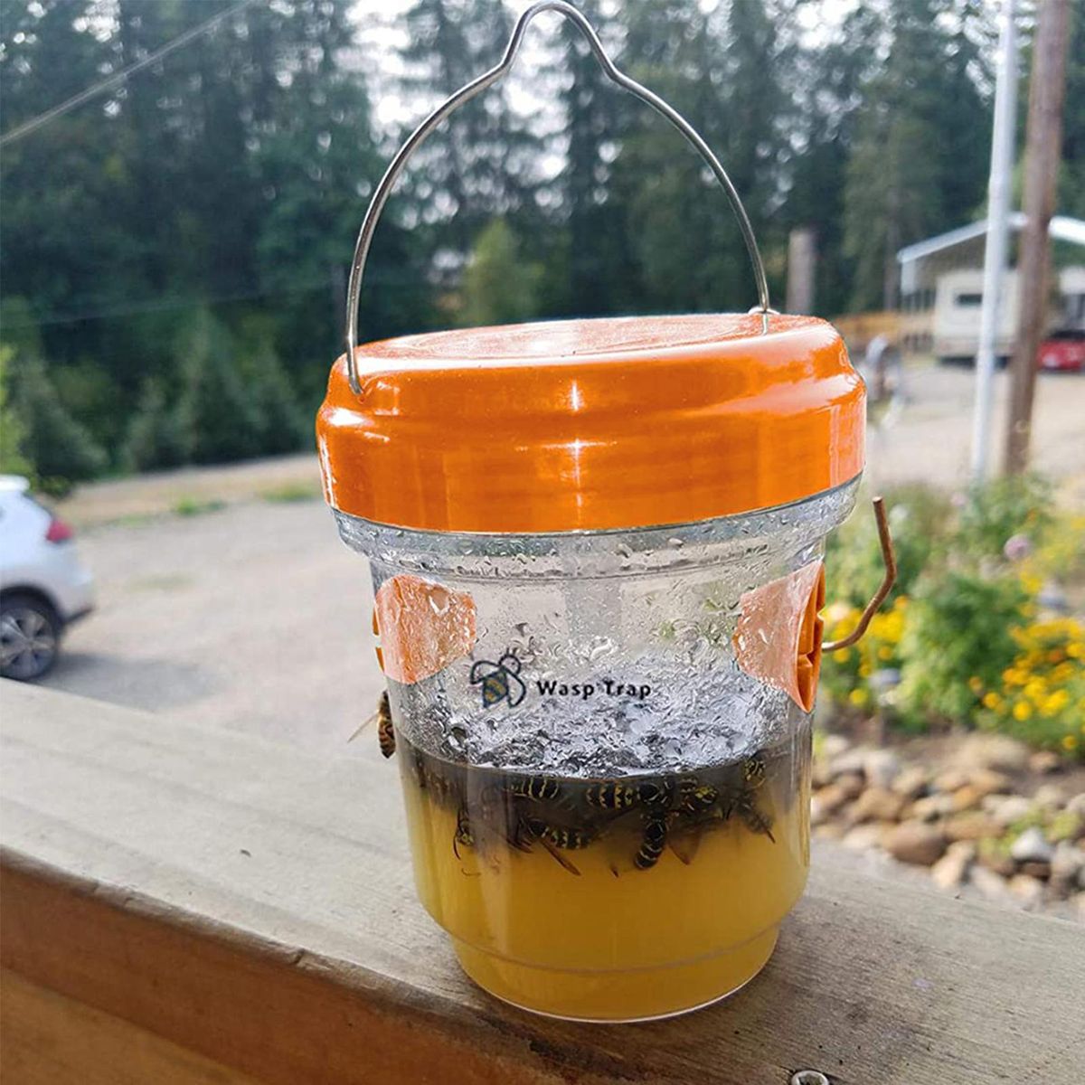 The outdoor hanging wasp trap can be used in multiple seasons to help youdifferent harmful flies in different seasons, it is safe and easy to use and can be poured with honey water, fruit, sugar water or fruit wine to attract bees and wasps.
