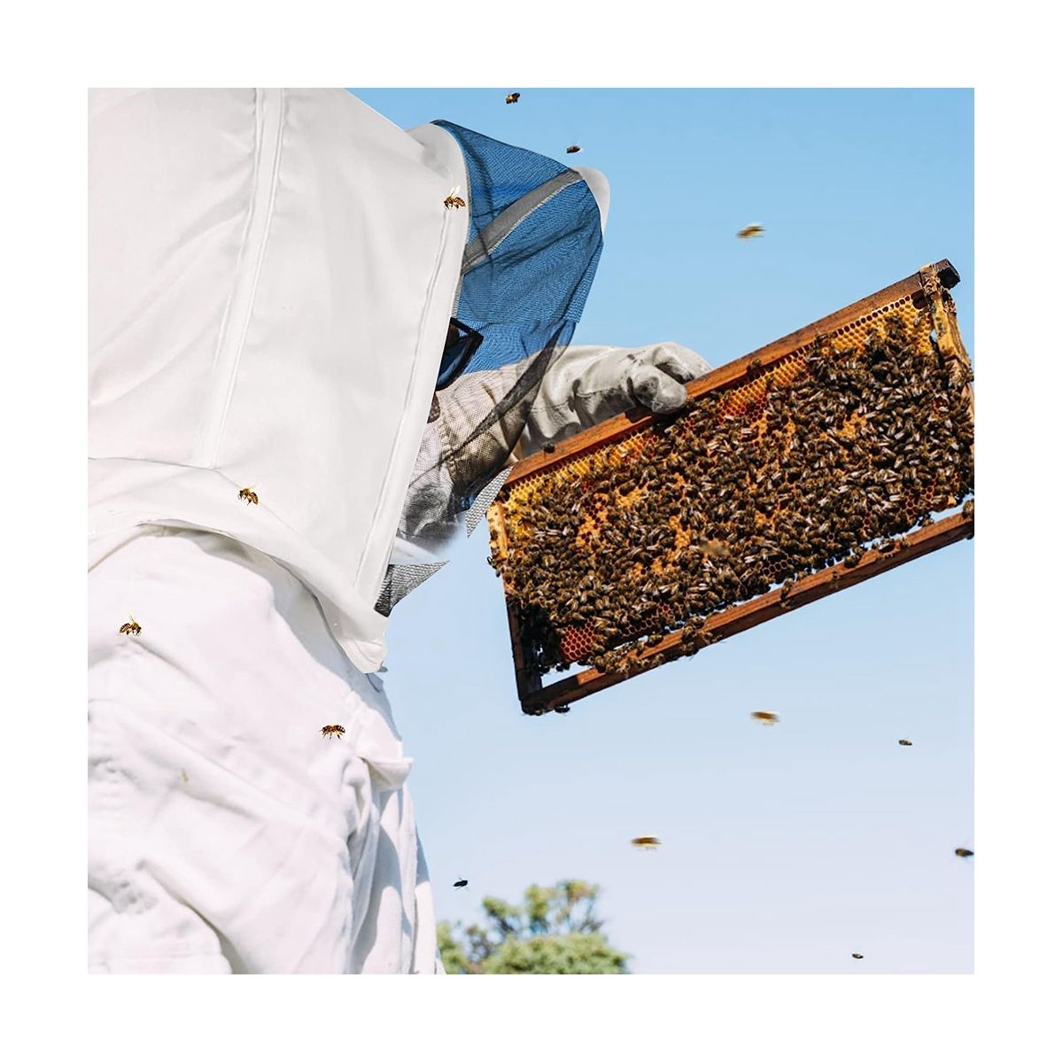 Detailed Information About The Product:FULL BODY BEE SUIT:Ventilated beekeeping suit with sheepskin gloves and removable fencing veil covering the whole body; wrists, waist and ankles are designed with elasticity to ensure that bees do not enter, allowing beekeepers to operate beekeeping tools and deal with bees without fear of stung, making it an essential beekeeping item for professional beekeepers and beginners alike.