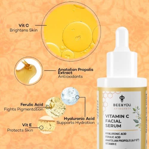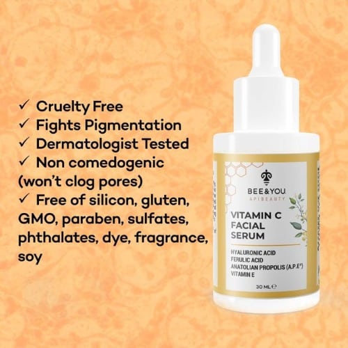 BEE&YOU Vitamin C Facial Serum is a powerful blend of natural ingredients balanced to work synergistically for your skin. Its formula has been clinically proven for: Brighter Skin, Fresher Looking Skin, Moisturizing Anti Aging and Fights Pigmentation.