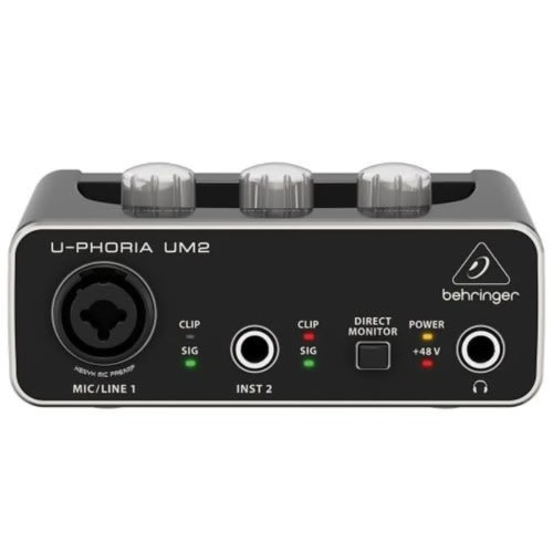When it's time to make recording history, You need the best audio interface you can get, and you need one you can count on. That's why BEHRINGER has introduced the new U-PHORIA series USB Audio interfaces. With 4 unique models to choose from, the U-PHORIA series has the ideal Interface to make your recording experience legendary. Midas-design preamps Midas developed the world-class preamps for the UMC204, UMC202 and UMC22 interfaces and thanks to the available +48 V phantom power, you can even use professional-grade studio condenser mics to create outstanding tracks. 96 kHz precision The U-PHORIA series offers the user The ability to switch between 48 kHz and 96kHz. Both sampling rates offer better than CD recording quality for professional results. Convenient monitoring the um-2 provides power phones output with level control, direct monitor selecting, status, signal and clip LEDs which is all powered through the computer USB port. BEHRINGER offers free audio recording, editing and broadcasting software including 150 instrument and effect plug-ins available at on their website. Compose. Record. Mix.Share. For composing, recording, editing, mixing and sharing music, traktion is included with the purchase of the um-2. This DAW features a single-screen interface with features such as dynamic automation, unlimited track count, MIDI recording and support for VST and AU plug-ins. Register your U-PHORIA UM2 at Behringer.Com, and they'll reward you with a complimentary download code for the full version of traction 4. Recording and editing couldn't be easier. Features: 2x2 USB Audio Interface for microphones and instruments audiophile 48 kHz resolution compatible with popular recording software including Avid Pro Tools, Ableton Live, Steinberg Cubase, etc. Streams 2 inputs/ 2 outputs with ultra-low latency, supporting Mac OS X and windows XP or higher +48 v-powered Xenia mic preamp comparable to stand-alone boutique preamps powerful phones output with level control and direct monitor select status, signal and clip indications for perfect overview USB port for connection and power free audio recording, editing and broadcasting software plus 150 instrument/effect plug-ins.