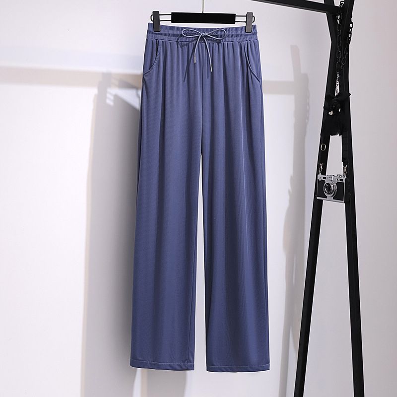 1X New 2022 Summer Plus Size Pants For Women Large Size Loose Casual Beige Blue Thin Wide Leg Viscose Trousers 3XL 4XL 5XL 6XL 7XL