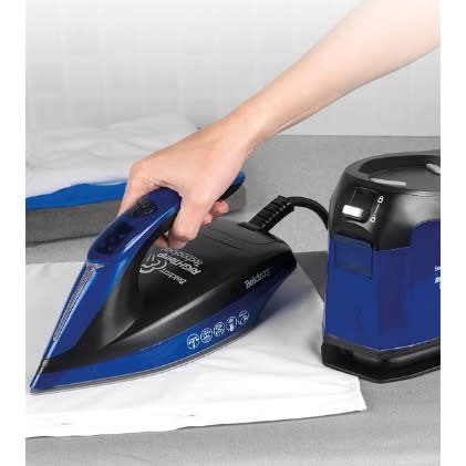 De-wrinkle your clothes fast with this unique iron by Morphy Richards. Unlike traditional irons, this cordless model comes with a 360 degree charging base so you can complete your chores without getting in a tangle. That means no more stepping over a power lead every time you change direction. From tough denim to delicate silks, the ceramic soleplates glide effortlessly over different fabrics, while the iron & rsquo;s steam levels can be adjusted depending on the garment type. And for particularly stubborn creases, a continuous steam output of 30 grams per minute has your back every time. Plus, you won & rsquo;t have to worry about limescale build-up with its clever anti-scale technology.