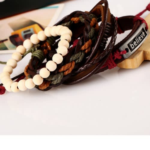 Buy Believe Hand Made Leather Bracelet Set - 4 Pieces in Nigeria