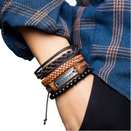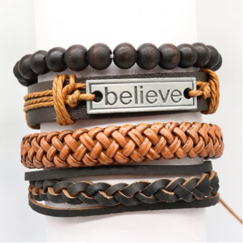 Buy Believe Vintage Men's Multilayer Braided Leather Bracelet -4Pcs in Nigeria
