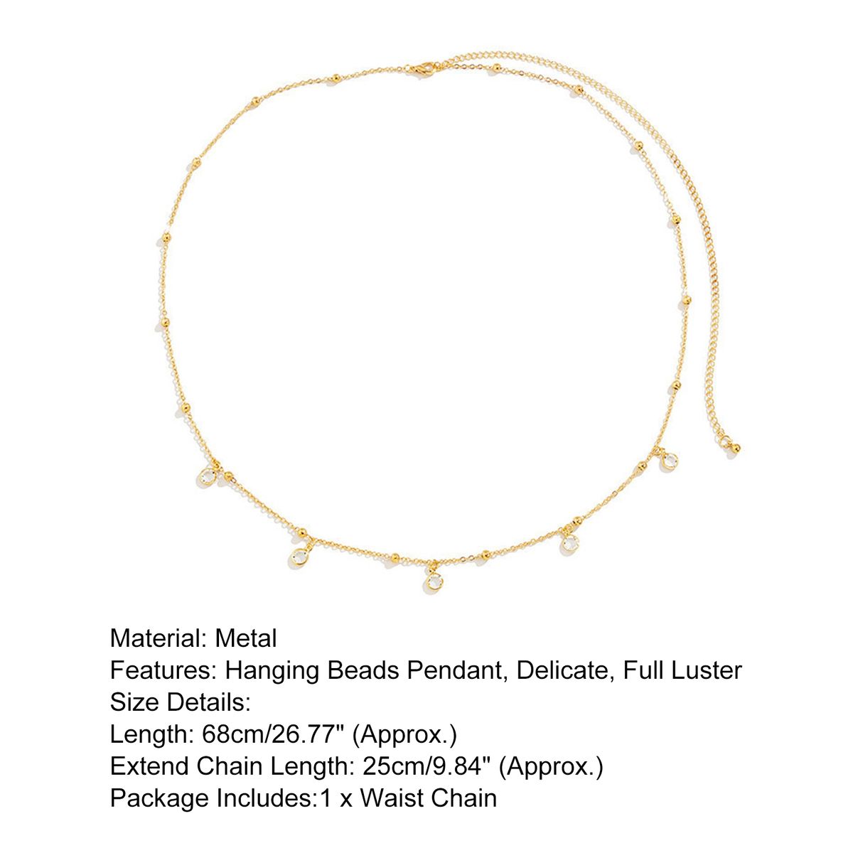Adopting the single layer beads and faux rhinestone pendant decor design, this waist chain can play a decorative role and well present your perfect or sexy body.