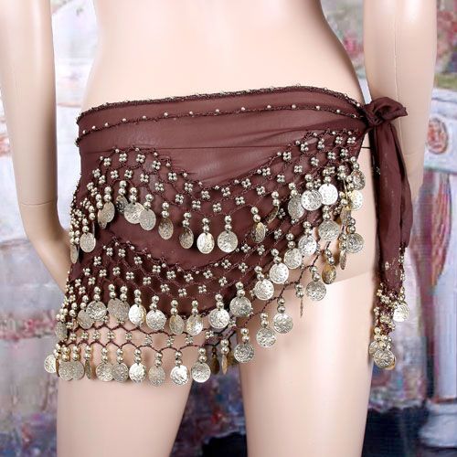 Cute Belly Dance Hip Chiffon Skirt Scarf Wrap Belt With Golden Coins in 3 Rows