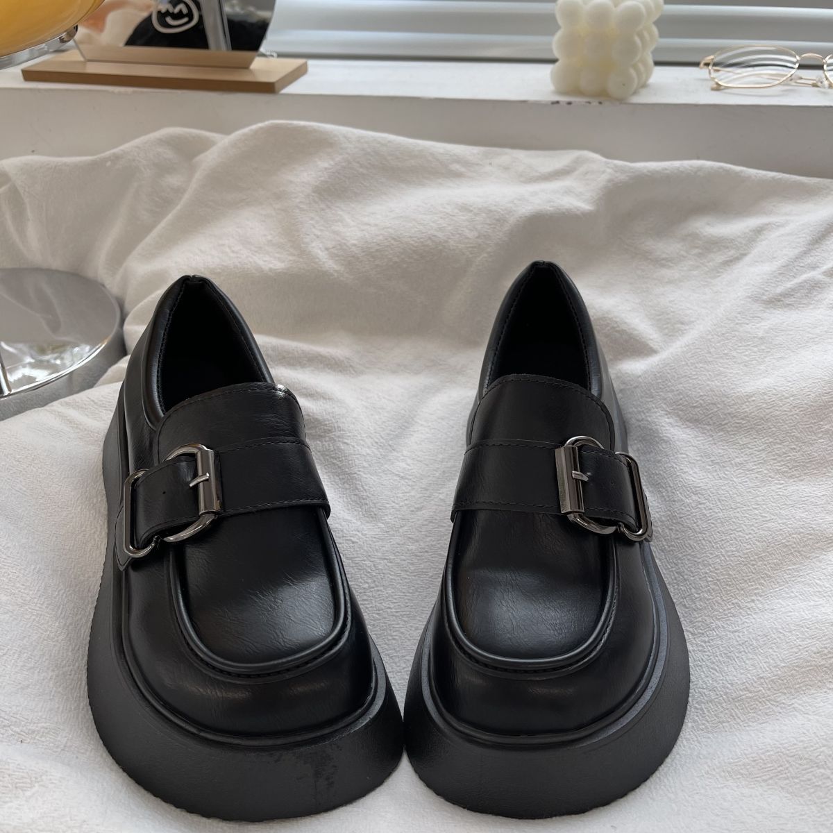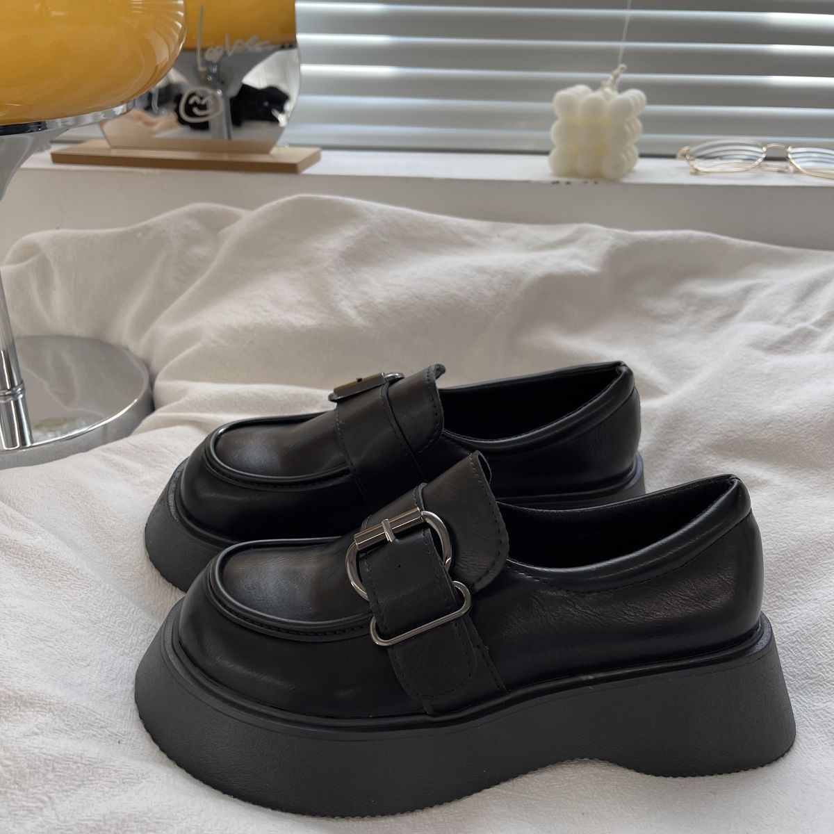 1X FONBERRY Belt Buckle Chunky Platform Loafers Shoes Women 2022 Patent Leather Round Toe Black Punk Goth Y2K Shoes Women