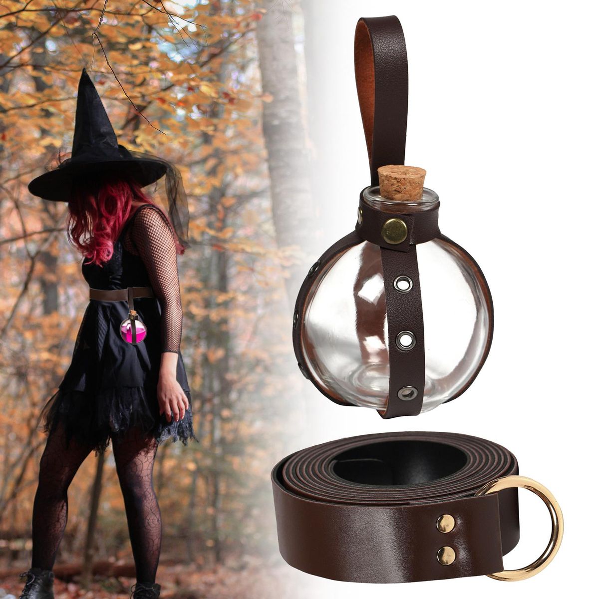 【4 Options】There are 4 style of PU leather belt with potion bottle for you to choose, you could pick the type matching your costume.