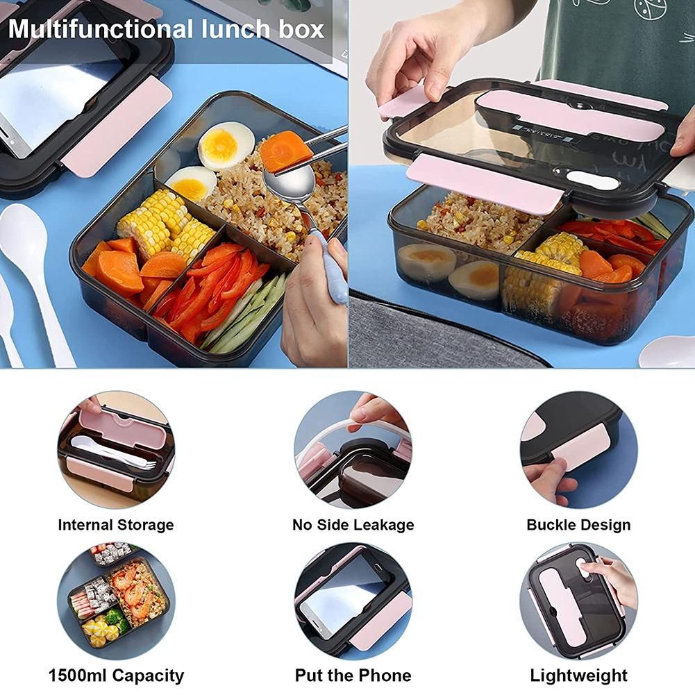 With 3 compartments, your new leak-proof lunch box will slide neatly into your handbag or laptop bag, which means less carrying your commute, no need to mix them together, bring a spoon and fork , Embedded tableware storage, don't worry about forgetting to bring the tableware, specially designed.