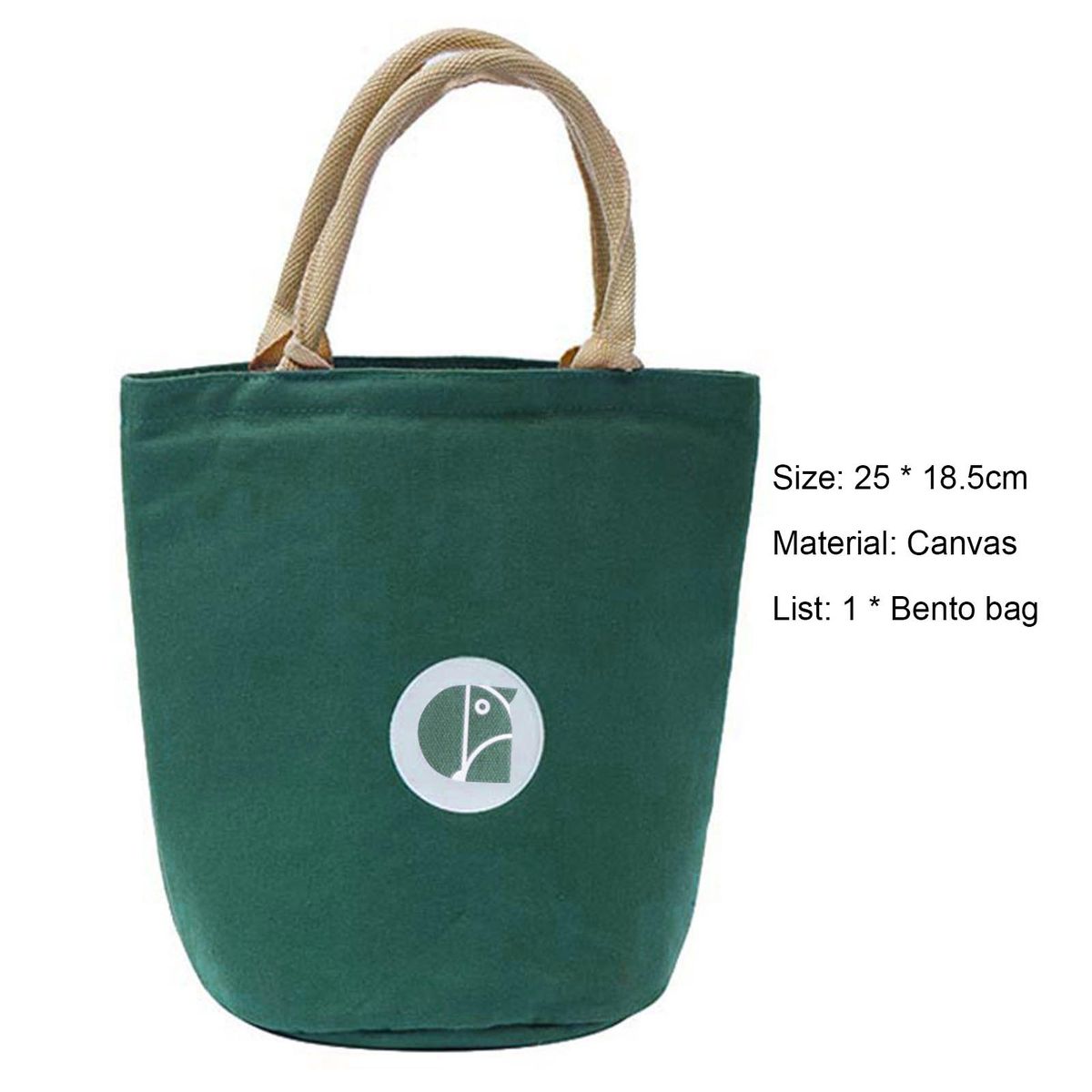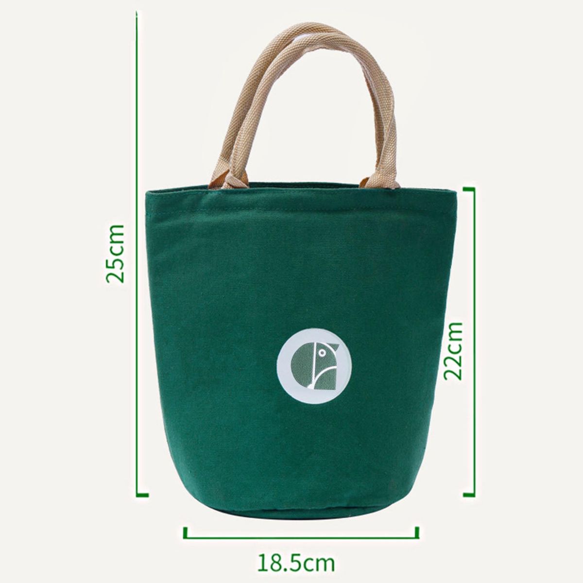 The diameter of the bento bag is 18.5cm and the height with handle is 25cm.