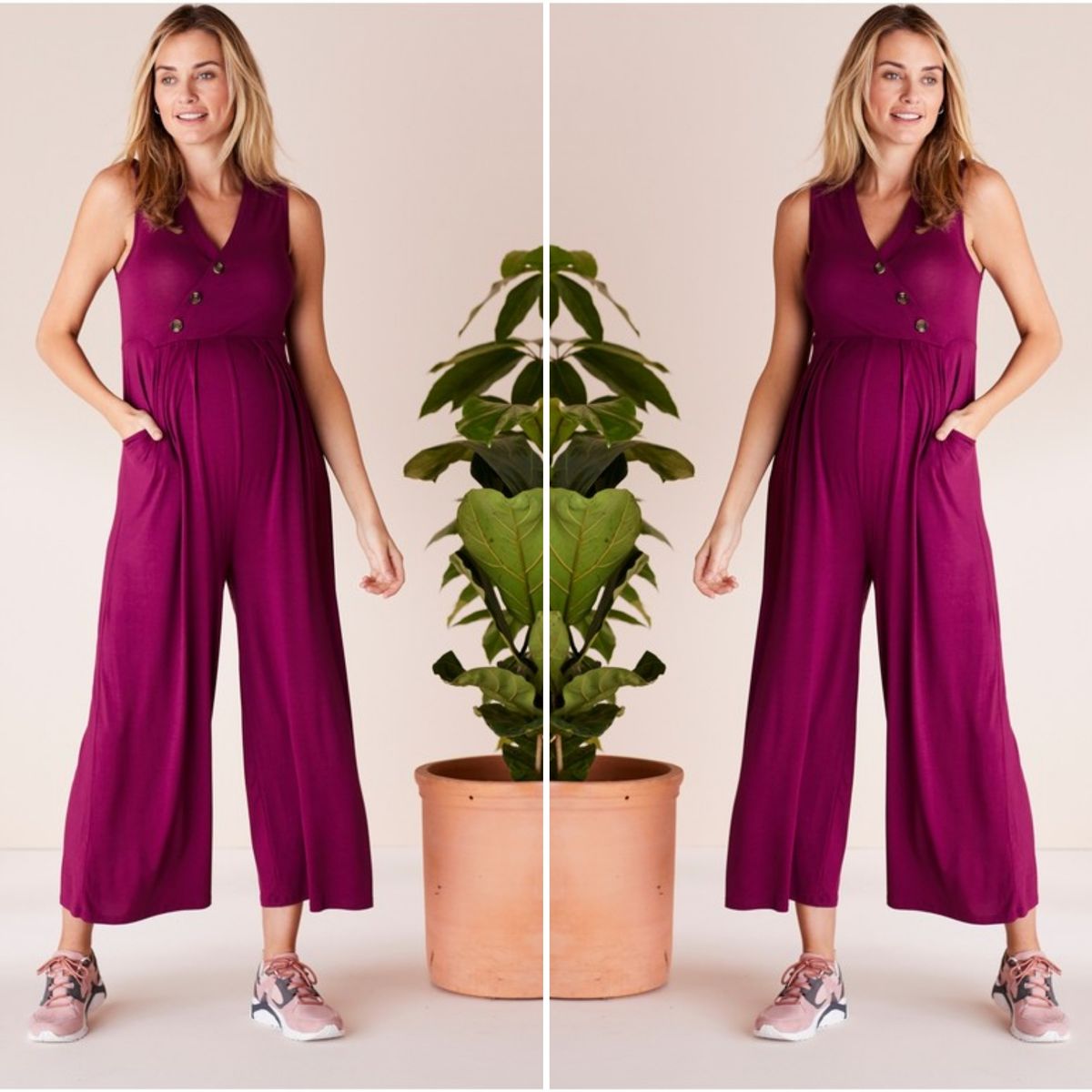 jumpsuit is made from a soft and stretchy fabric for maximum comfort. Designed with functional buttons, for ease of nursing and is perfect to wear during and after pregnancy.