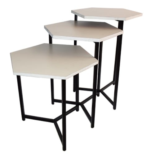 Stylish geometric designSturdy metal framePainted metal finishIncludes 1 large and 1 small tableAvailable in several different variationsShips ready-to-assemble with step-by-step instructionsDimensions: