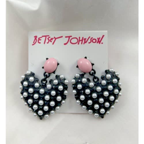 Buy Betsey Johnson Wonderland Black Tone Faux Pearl Heart Drop Earrings in Nigeria