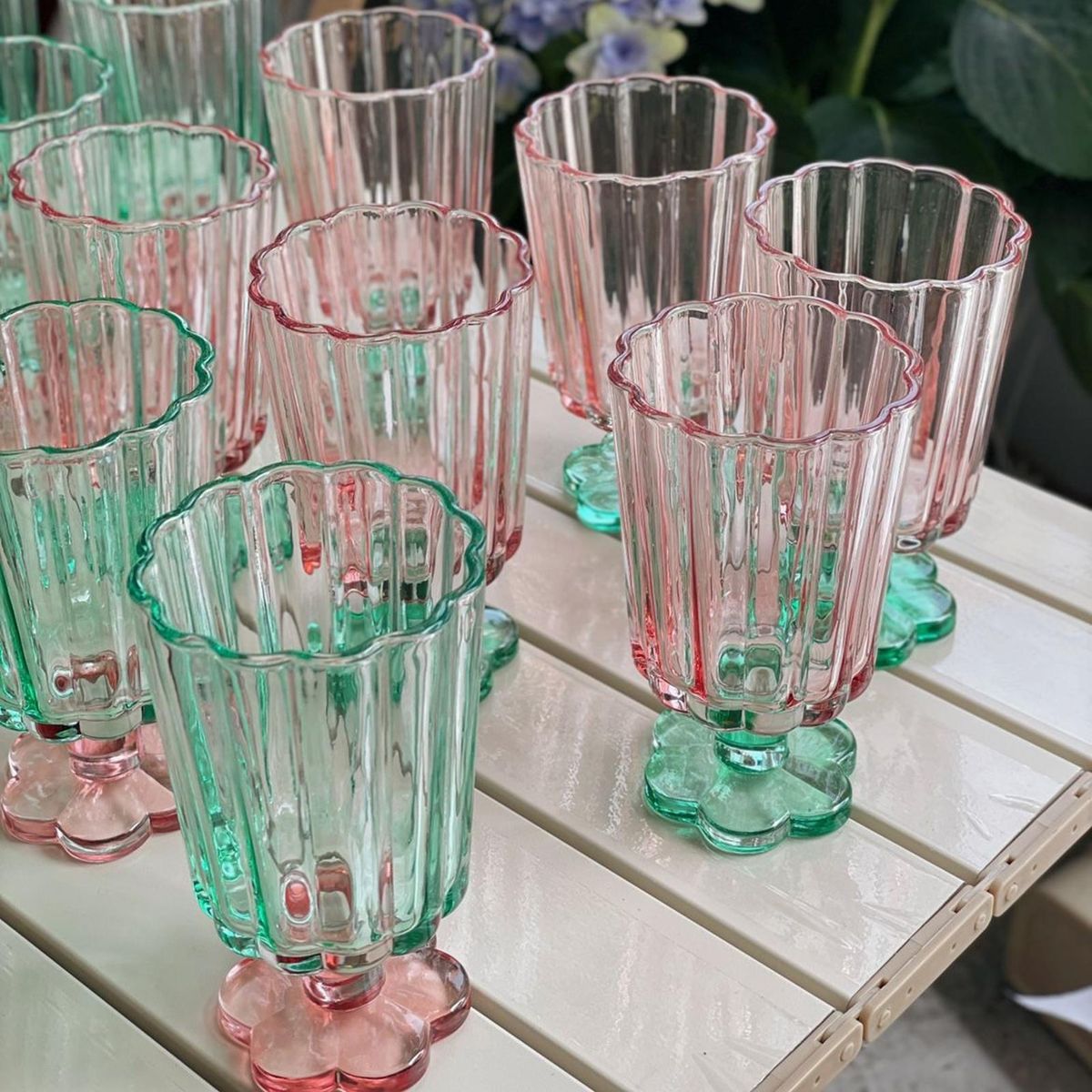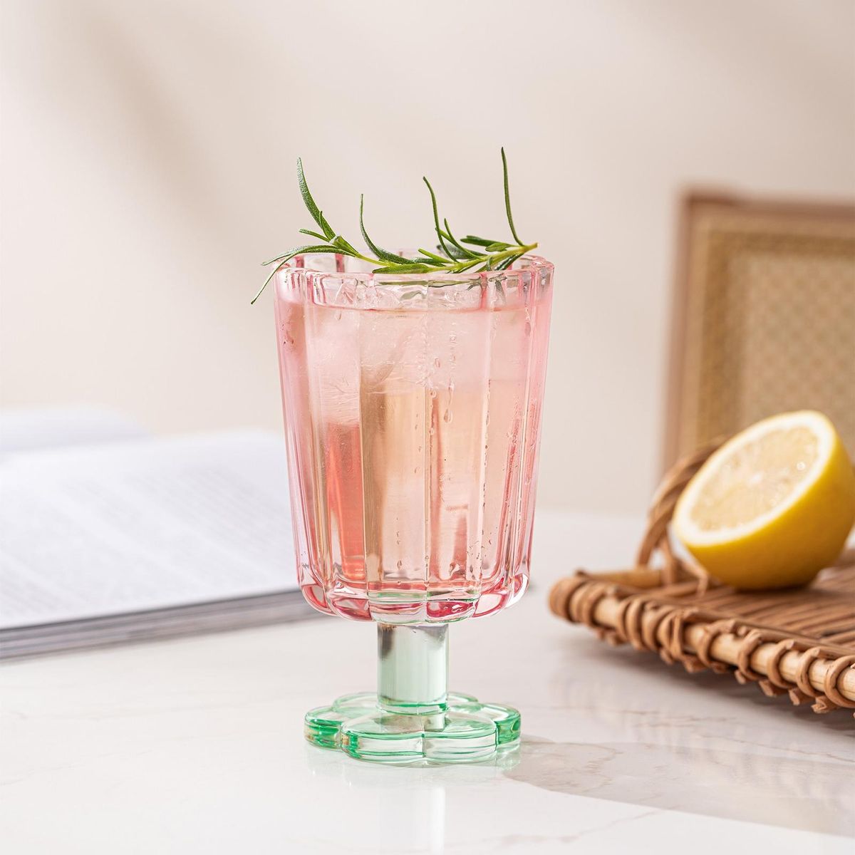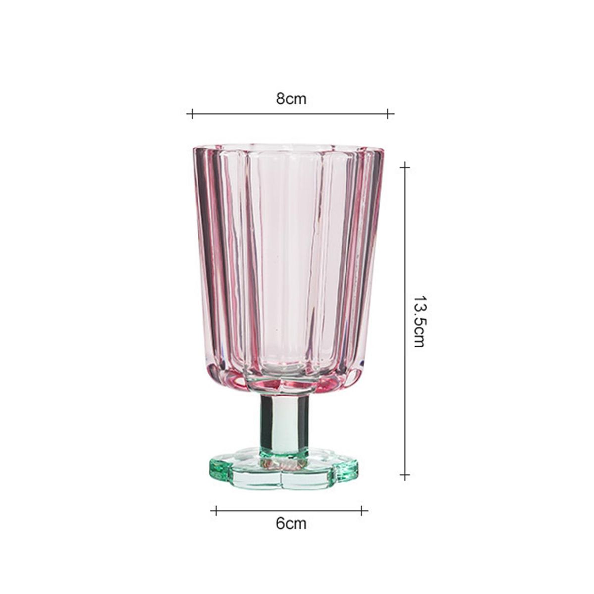A cup is designed as a goblet, with a thick and enlarged stem, which is comfortable to hold and stable to place. It can be used as wine glasses, cocktail glasses, beverage cups, ice cream cups and so on.