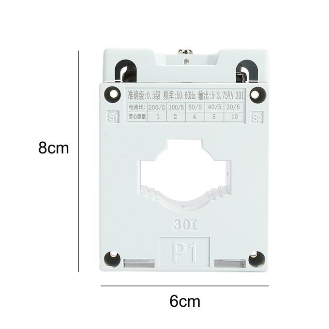 The length of this current transformer is 8cm, the width is 6cm, the height is 3.8cm.
