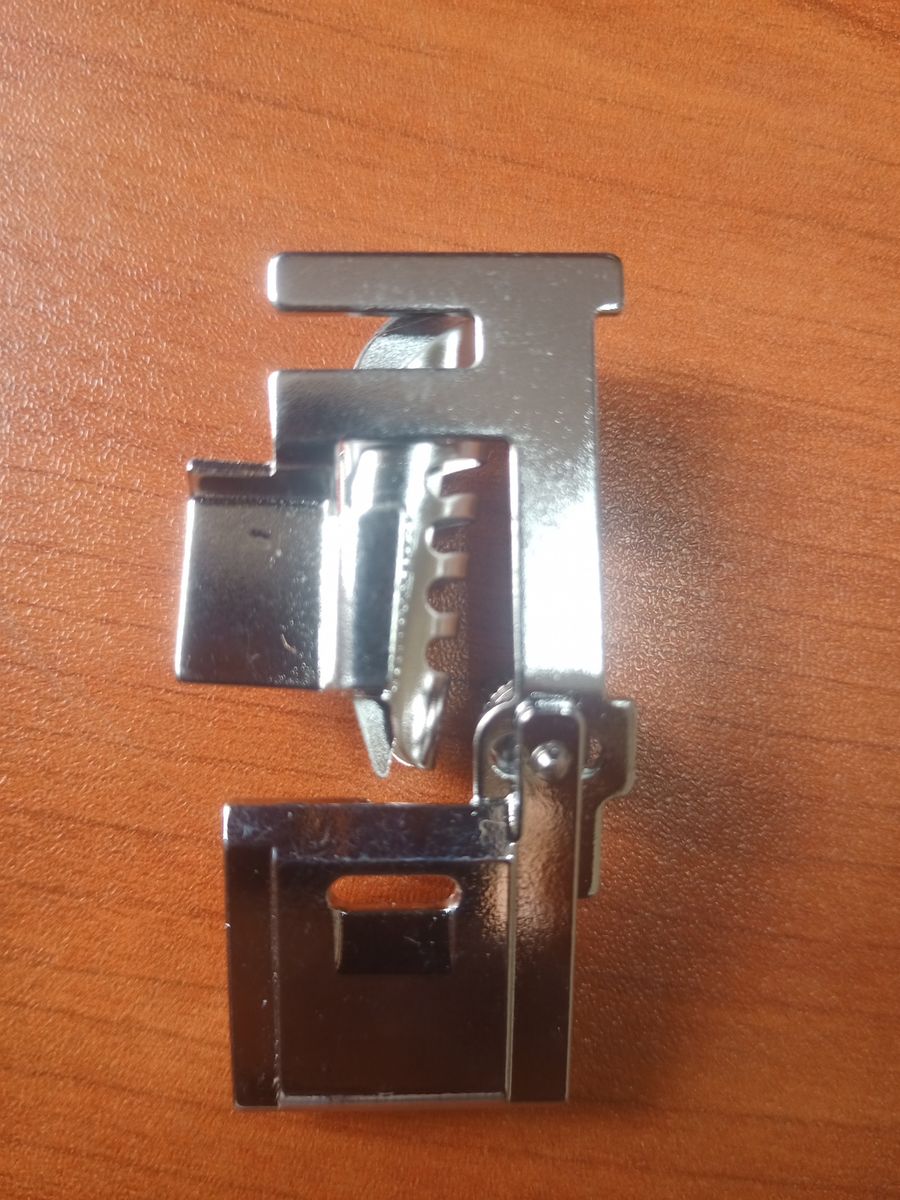 1. Before installing the presser foot, turn the trim strip inserted into the guide funnel of the presser foot, trim selvage ensure alignment of the presser foot guide funnel;