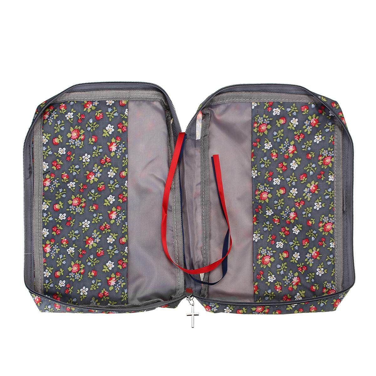 ● Water painted scripture and floral design brings a boost of to this amazing Bible Cover. Sturdy canvas bible cover with wraparound zipper and on front