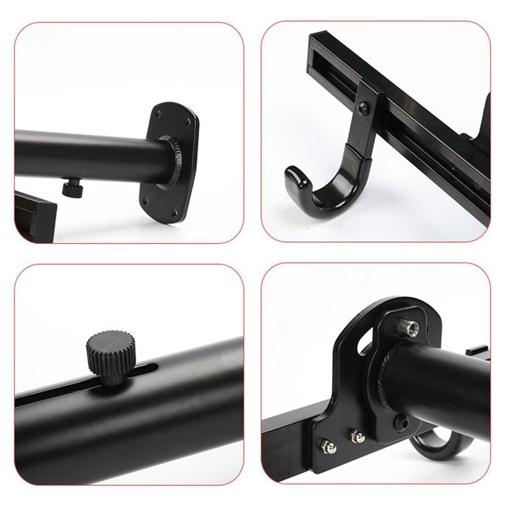 It is made of metal and has a durable black powder coating. After installation, the rack can hold more than 50 pounds of gears! Does not include hardware.
