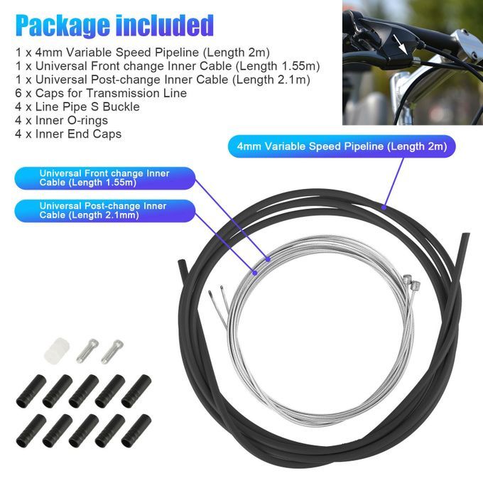 1 Set Shifter Cable Housing Set (2x Inner Cable, 1x Housing, 10x End Caps, 1x O Rings, 2x Crimps )