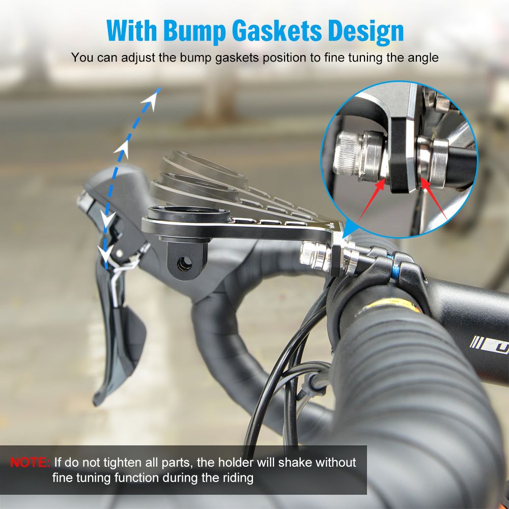 With bump gaskets design,you can adjust the bump gaskets position to fine tuning the angle.(NOTE: If do not tighten all parts, the holder will shake without fine tuning function during the riding.)