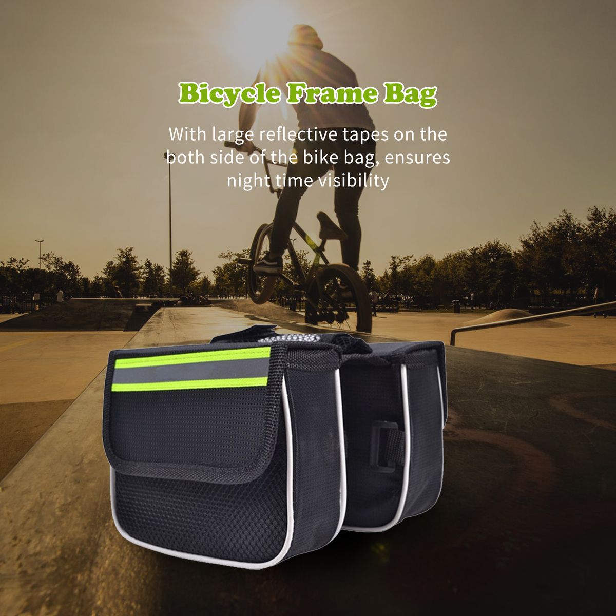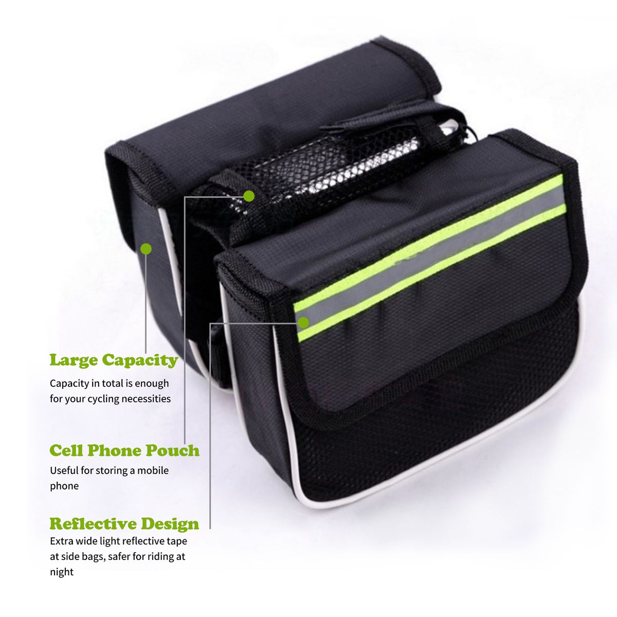 [Reflective]Bicycle front frame bag with extra-wide light reflective tape at side bags, safer for riding at night.