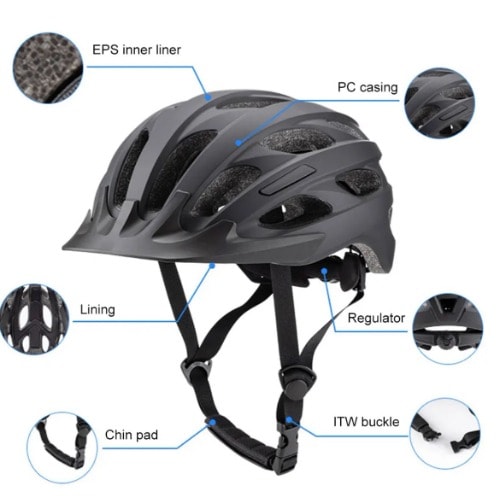 In mould Bicycle with light function. The helmets come in top quality. The inside is made up of high-quality full-strength Polimer. The hard covering Polimer Plastic is designed for maximum Strength, Safety, and Comfort.