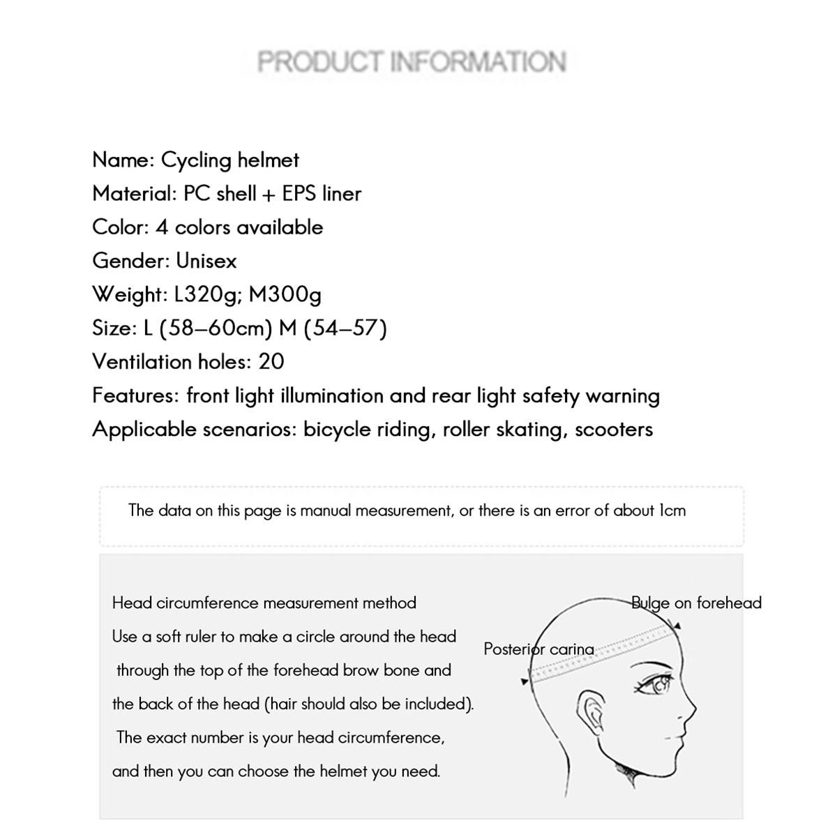 Bicycle Helmet with Lights Lightweight for MTB RoadExcellent impact protection: this bicycle helmet has EPS foam inside and a hard PP shell outside. Double defence lines protect your safety. the foam inner layer inside the cap body helmet is used to absorb the impact force in the event of an accident and reduce the accident injury.