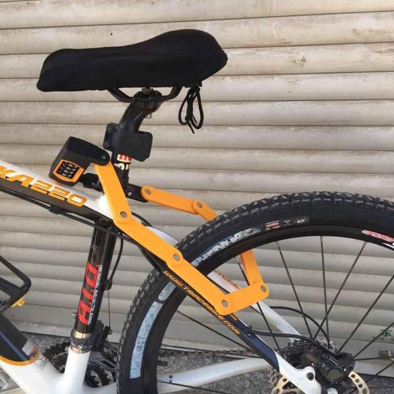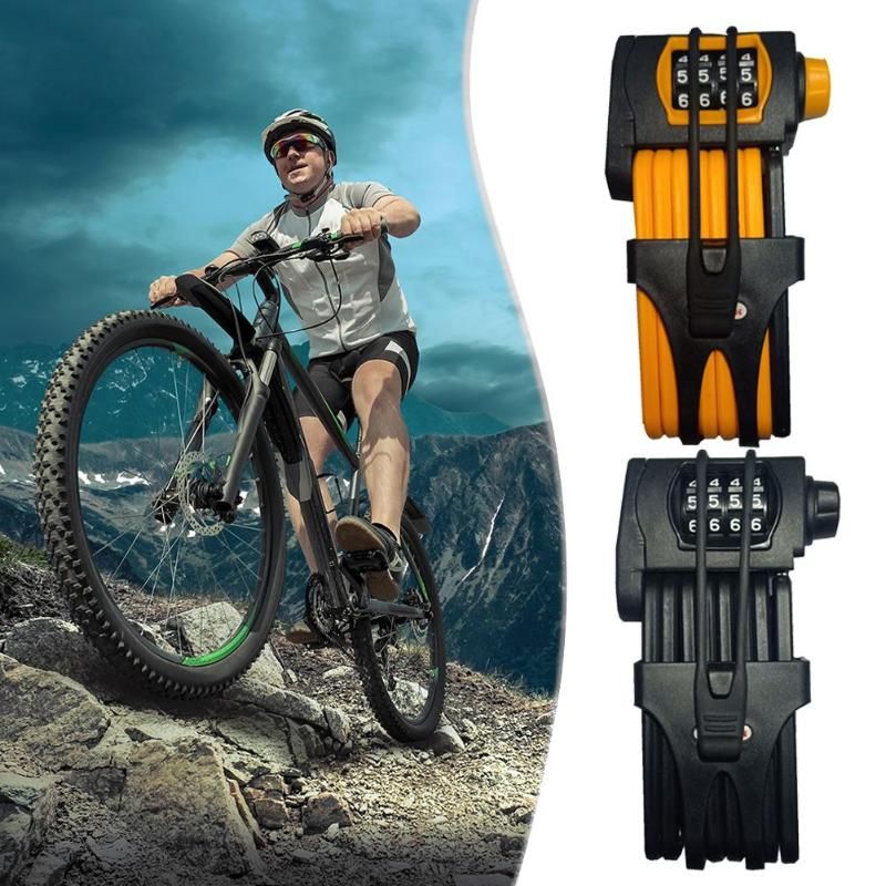 Bike Folding Password Lock Safety Anti-theft Alloy Steel Bicycles 4 Dial Digit Secret Code Combination Locks Features: Folding way, convenient storage. Super thick lock body, strong anti-theft. Covered with ABS plastic surface, safe and does not damage the frame. High strength lock frame, not easy to damage. Perfect fitting lock body is not easy to shake. Specification: Material: Alloy steel Color: Black, Orange Size: 258x120x55mm/10.16x4.72x2.17in Net weight: 970g Gross weight: 1005g Notes: 1. Due to the different monitor and light effect, the actual color of the item might be slightly different from the color showed on the pictures. Thank you! 2. Please allow 1-3cm measuring deviation due to manual measurement. 1 X Bike Folding Password Lock