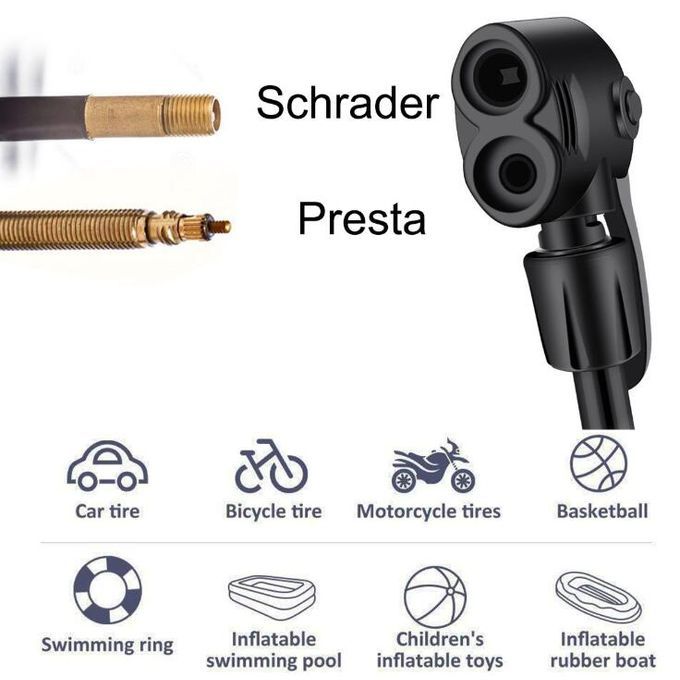Portable Aluminum Alloy Mini Bike Bicycle Foot Pump Tire Tyre Air Inflator Valve