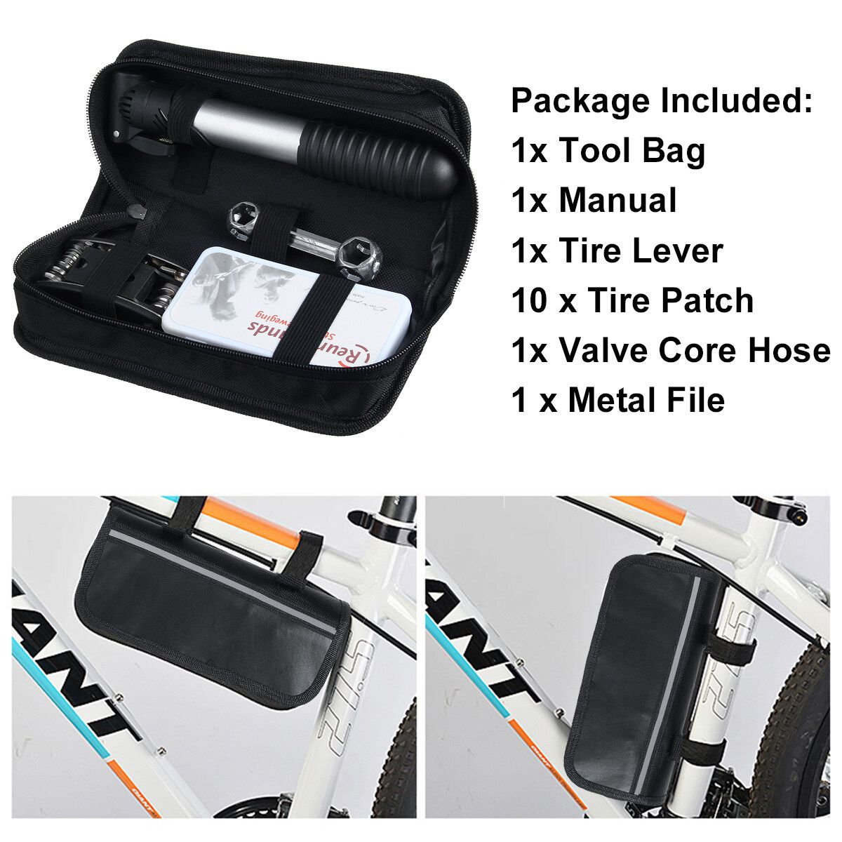1x Tool Bag 1x Manual 1x Tire Lever 10 x Tire Patch 1x Valve Core Hose 1 * Metal File