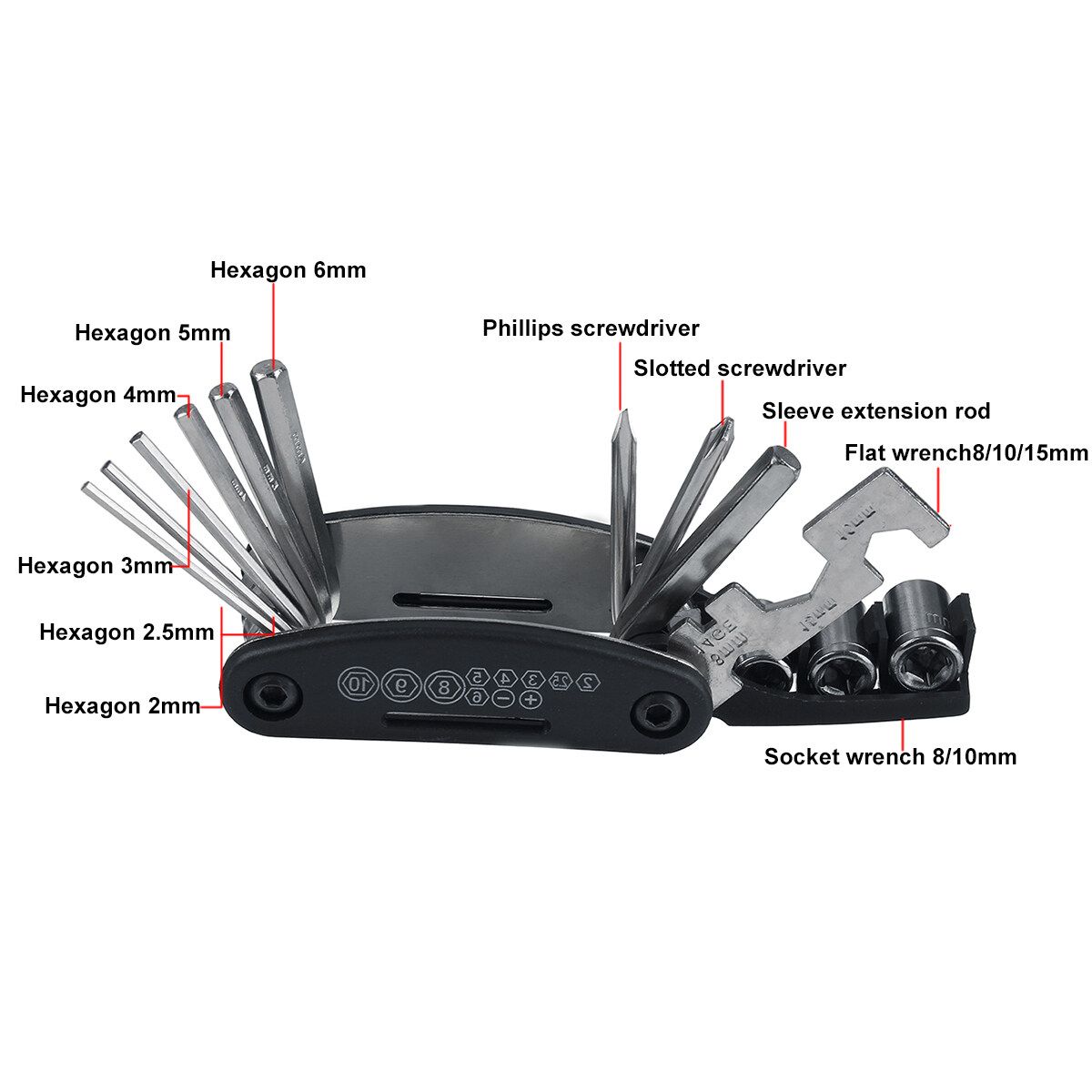 - Includes the most common tools needed for many basic adjustments and repairs of your bike at home or on the road.