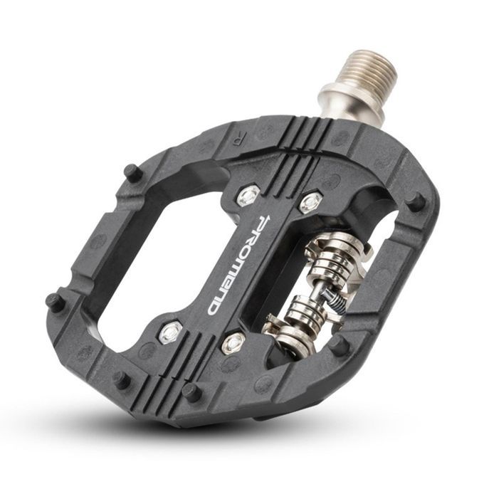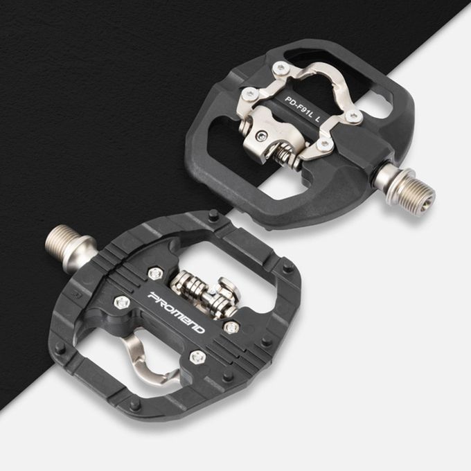 This is a MTB Bike Pedal with self-locking pedals and flat pedals. The front side is self-locking mode and the back side is flat pedal mode. It is suitable for SPD system.