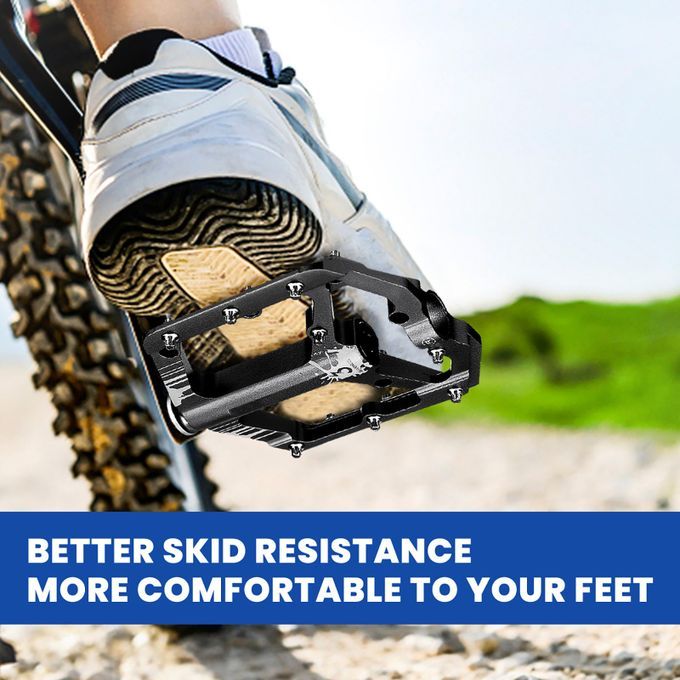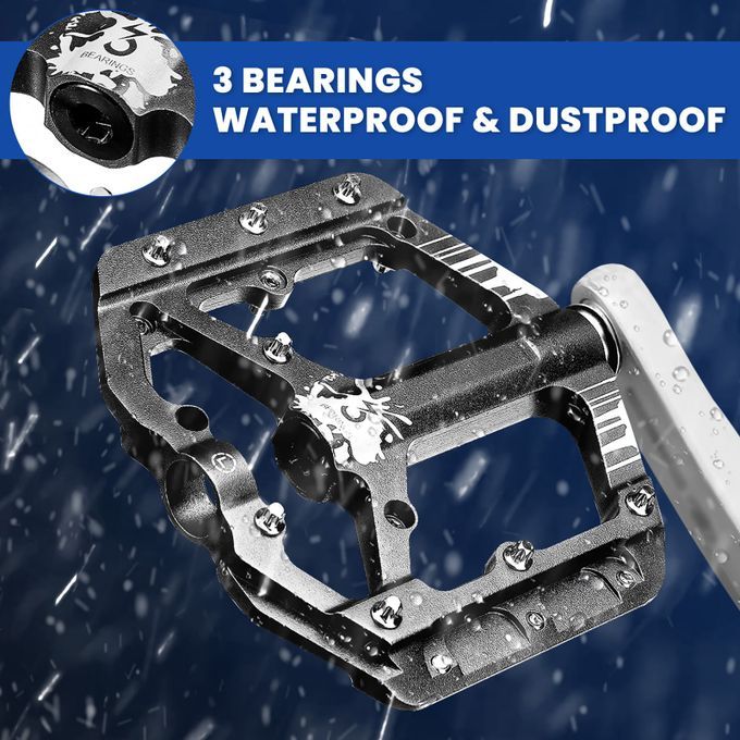 Specification: Material Aluminium Alloy Color Black Weight 312g Features: Low-profile, Light weight. The ultra thin platform makes it perfect for trail bikes and all mountain bikes. With IGUS high molecular bushing. Full machined alloy hardware Water proof axle system. Low-profile, Light weight. The ultra thin platform makes it perfect for trail bikes and all mountain bikes. With IGUS high molecular bushing. Full machined alloy hardware Water proof axle system. Package included: 1 x Pair of bike pedals