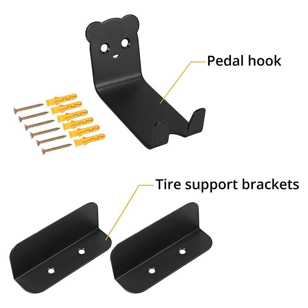 [ OF APPLICATION] The bicycle wall mounts are suitable for for all type bikes like electric bike, mountain bikes, , road bikes, kids bike, hybrid bike and folding bikes, etc. Six bike can securely up to two bicycles. Two pedal storage brackets can surfboard, which is also a good choice.