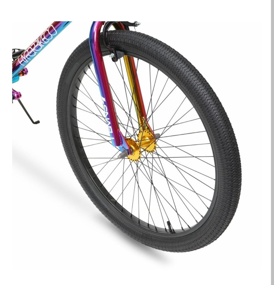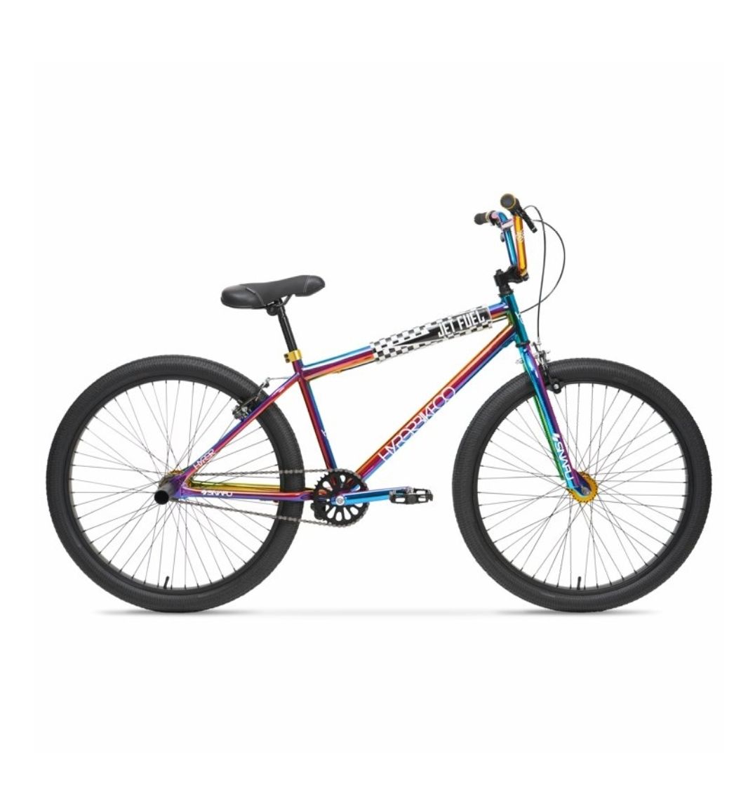 Check out the custom jet fuel paint on this Hyper Bicycles 26" Jet Fuel BMX Bike! Do all your tricks at the bike park with our 26 inch BMX bike with the Jet Fuel paint. This BMX bike has platform BMX pedals, microdrive front and rear sprockets, and a rotor for a 360-degree handlebar rotation. The entire frame is guaranteed against faulty materials and workmanship for as long as the initial consumer purchaser has the bicycle, subject to the conditions of the warranty, see website for more info.
