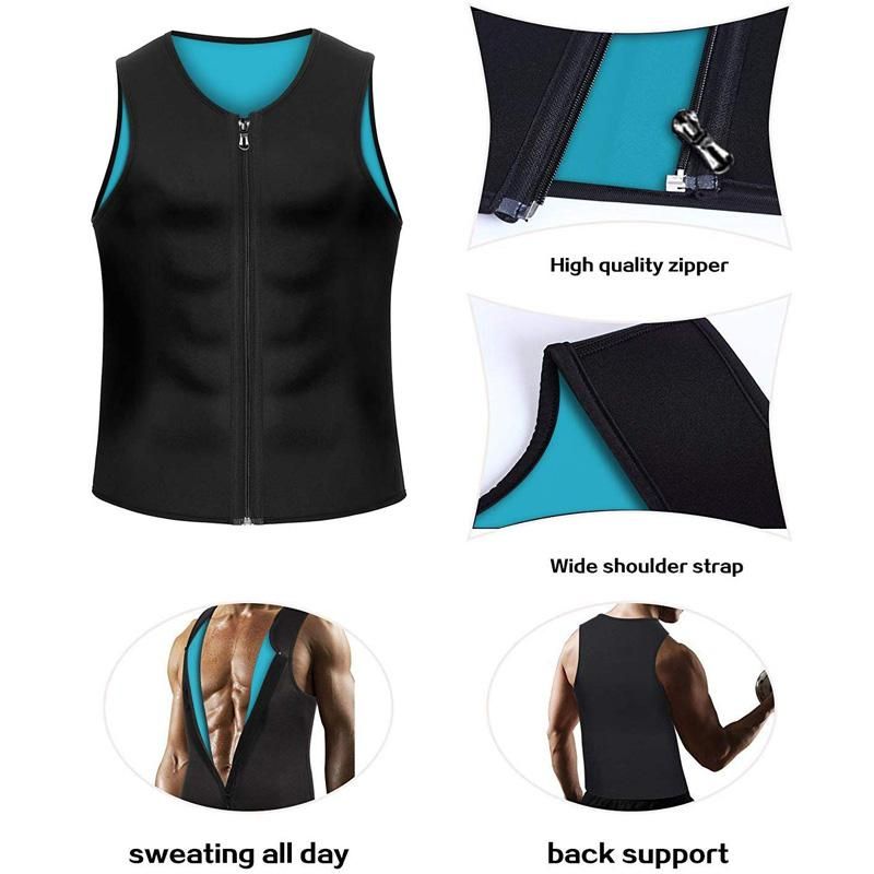 Moldeador de cuerpo de talla grande para hombre corse con cremallera entrenador de cintura de neopreno chaleco de compresion para Abdomen camisa elastica para el pecho y la barriga