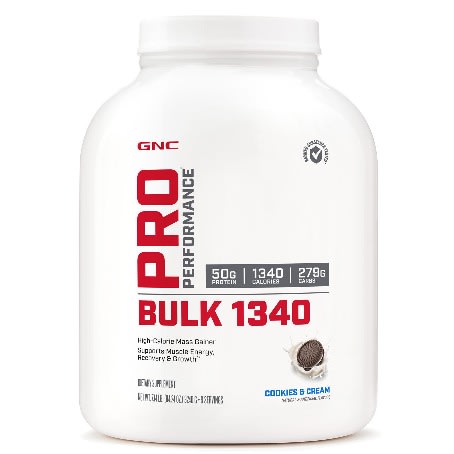 GNC PRO PERFORMANCE & reg; BULK 1340 - COOKIES AND CREAMWhether you mix it into a simple shake or a blended smoothie, GNC Pro Performance & reg; Bulk 1340 is a convenient, high-calorie mass gainer that supports muscle energy, recovery and growth.*^ With 50g of protein, 1,340 calories and 277g of carbohydrates per serving, this dietary supplement is formulated to help you increase size*^ fuel your body & rsquo;s demands*, so you can power through each workout and training session.