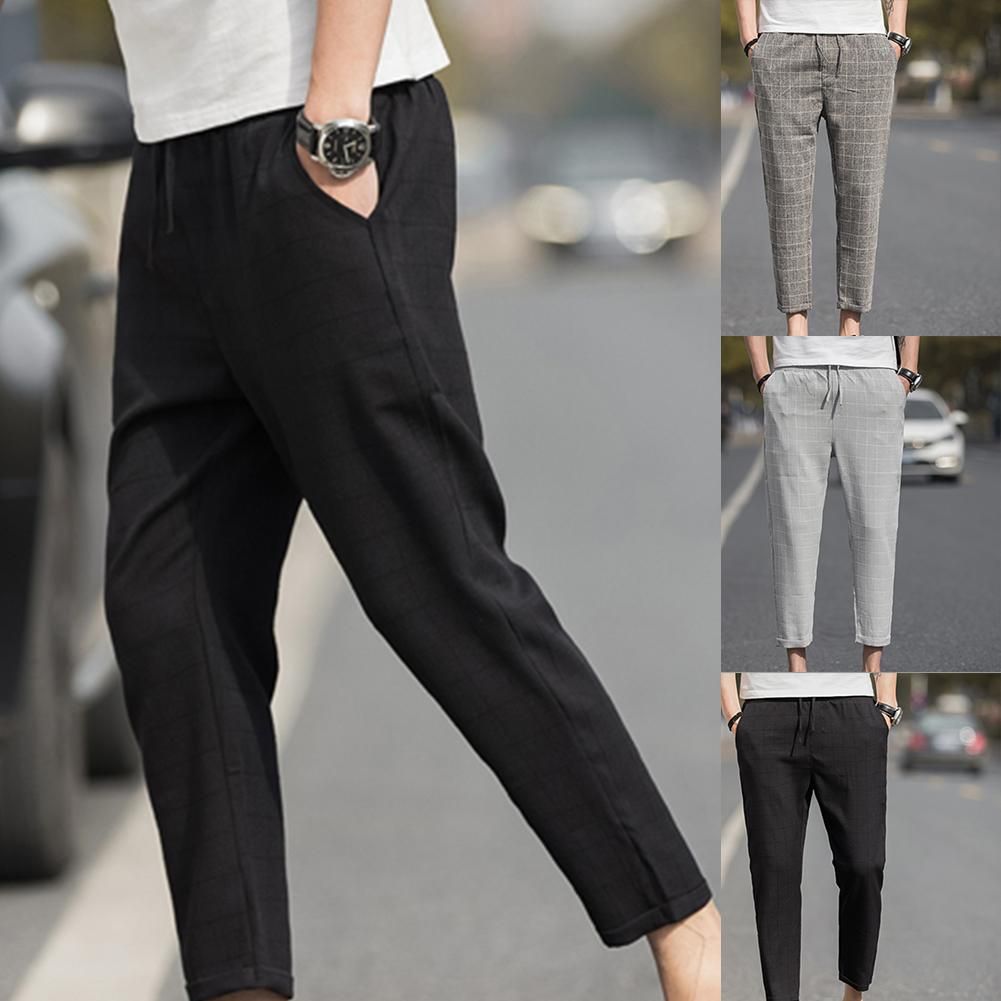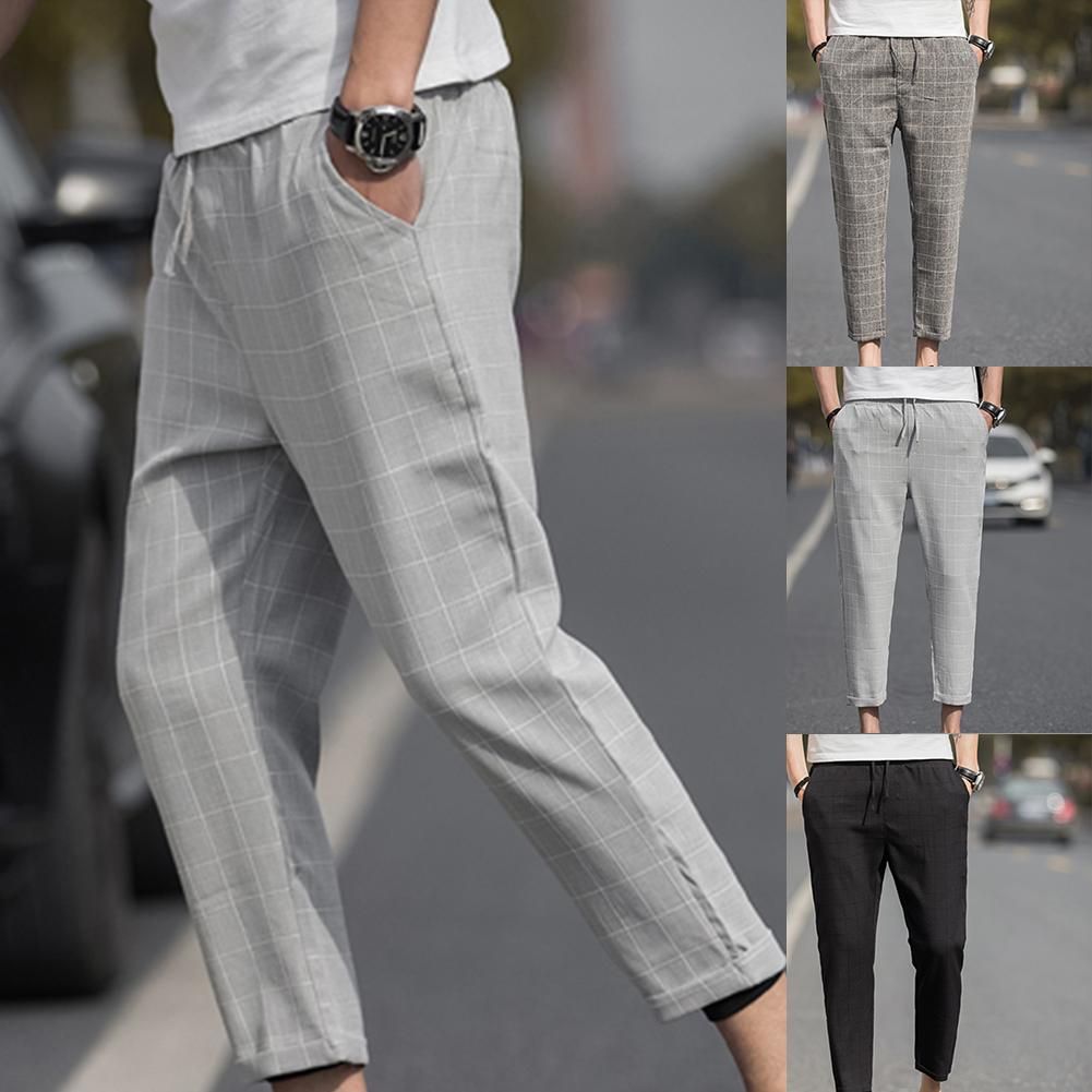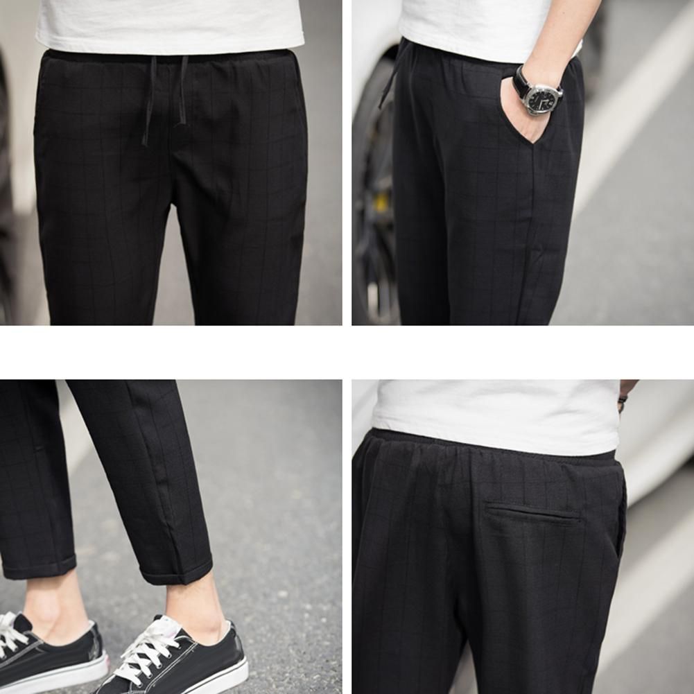 Pantalones de talla grande a cuadros para hombre pantalones de lapiz con bolsillo y cordon cintura elastica bombachos informales