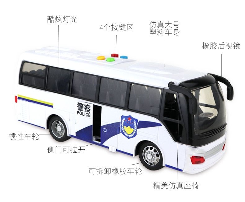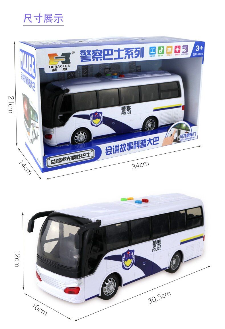 - Title:Big white police bus open door light Music car model voiture juguete boys birthday oyuncak Christmas gift kids toys