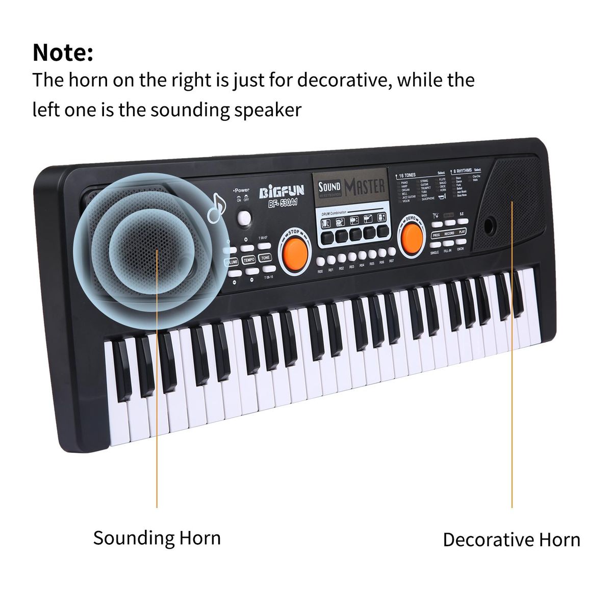 Buy BIGFUN 49 Keys USB Electronic Organ Kids Electric Piano with Microphone Black Digital Music Electronic Keyboard Built-in Stereo Speakers with 16 Tones 8 Rhythms 6 Demo Songs 5 Percussion Kids Gift Musical Instrument in Nigeria