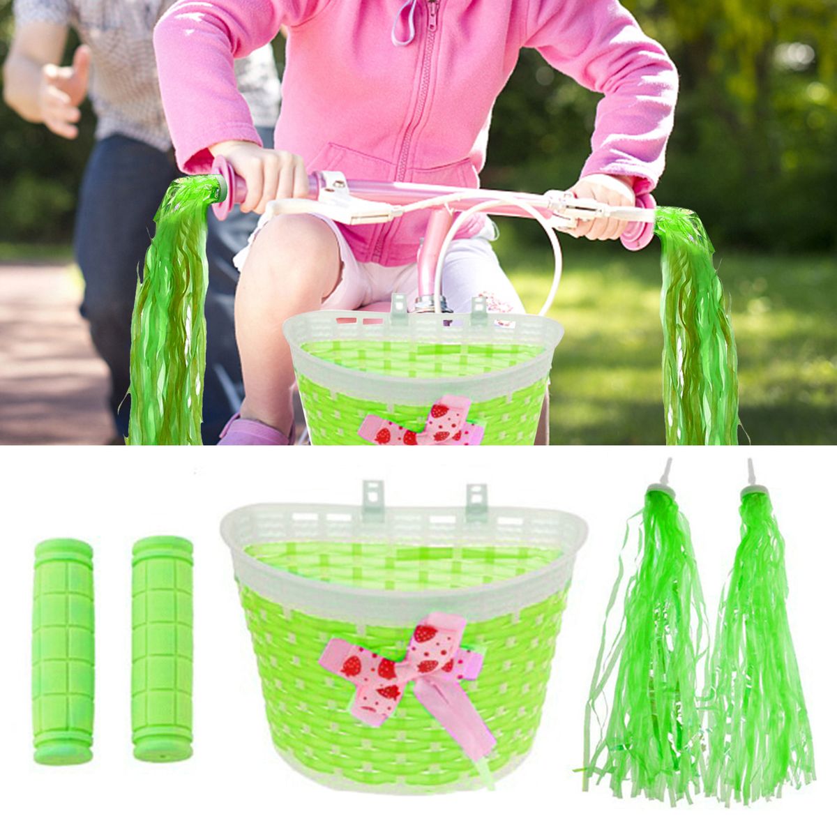1*Bike Basket With Handlebar Streamers Charming Deli
