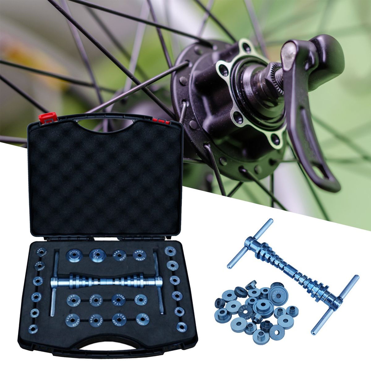 The tools box is used for bike bearing repair, high strength aluminum alloy, durable to use.