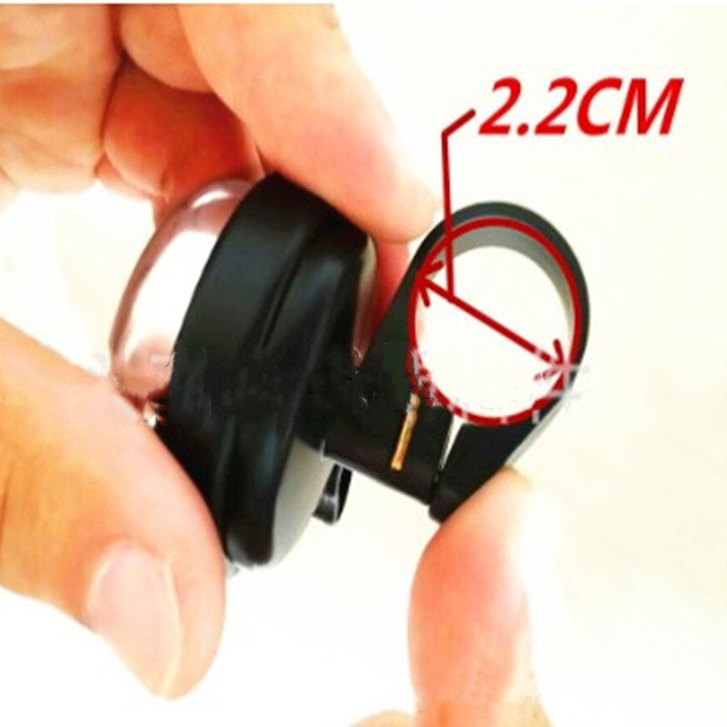 Features:1.New and High quality2.The bell with ringing sound3.Apply to all kinds of bicycle4.Used with high quality material, Waterproof and not rustSpecifications:1.Material:Plastic,metal2.Color:Silver/Black/Red/Blue/Yellow3.Bell Diameter:5cmSuit for 2.2CM Diameter Handlebar