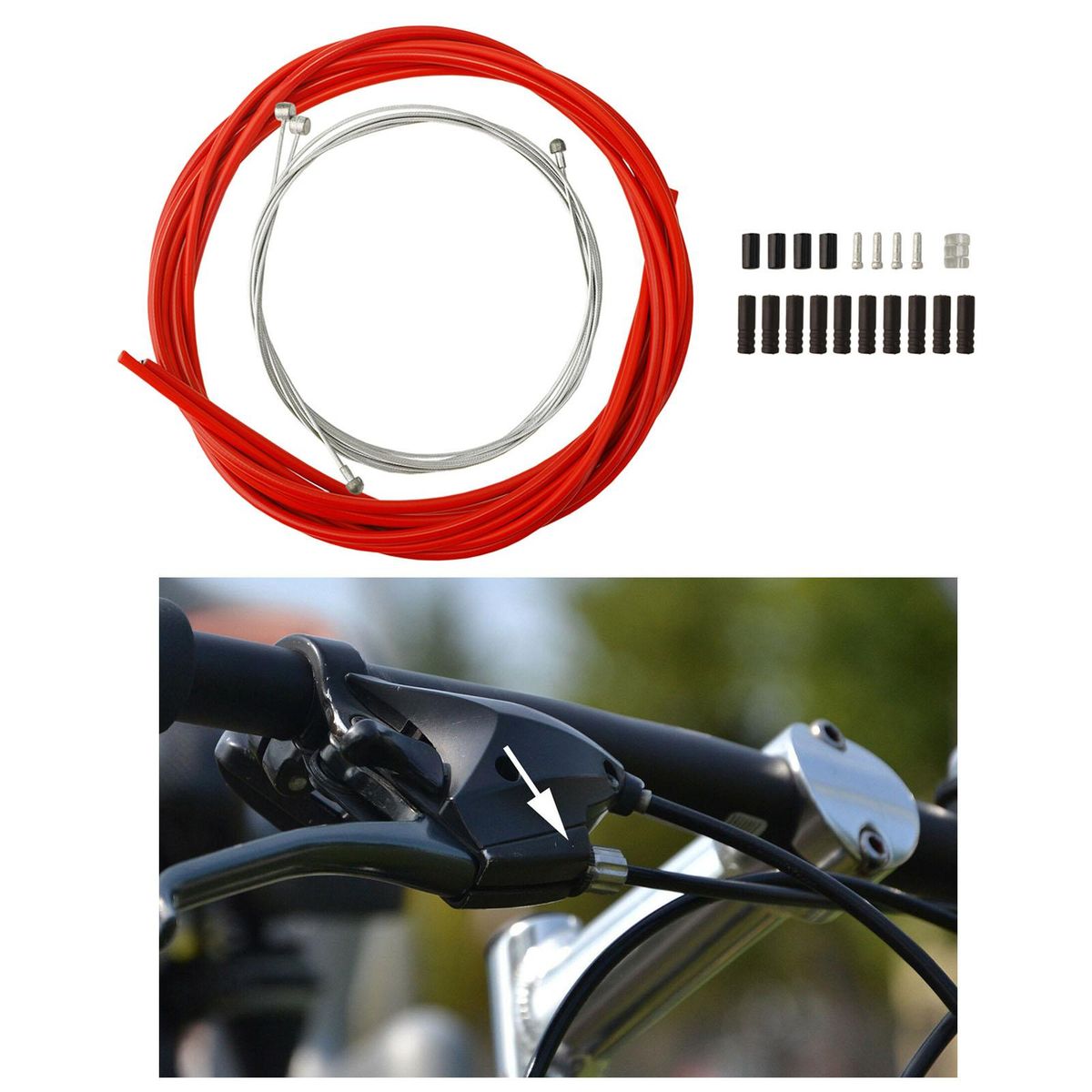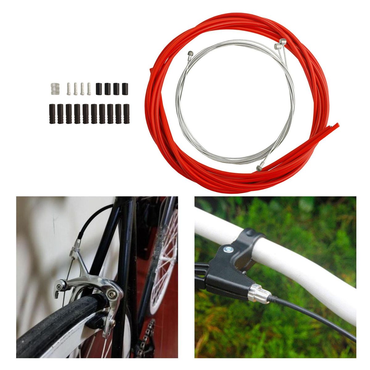 Universal Bike Shift/Derailleur & Brake Cable Housing set for mountain, road, folding bicyclesStainless steel coated cables and PVC housing- very tough, solid, cold & heat resistance and weather resistance2.5m brake cable housing(OD 5mm), 2m shift cable housing(OD 4mm)Front shift cable- 1.55m, rear shift cable-2.1m, you custom size according to your needsEquipped with 4x brake cable end caps, 4x cable end caps, 10x shift cable end caps, 1x o-rings
