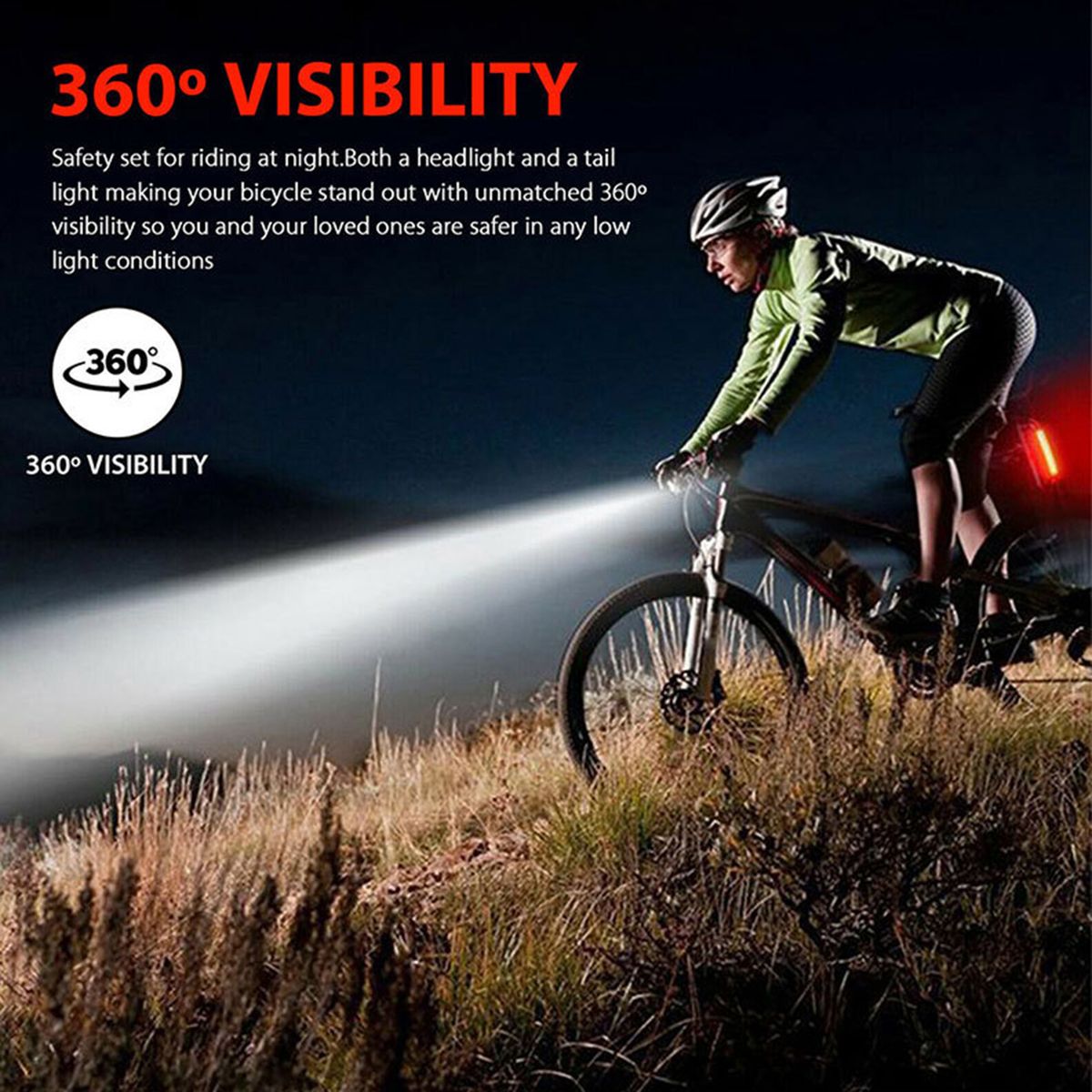 A headlight and a tailight, safety set for riding at night, 800lm high brightness, three brightness adjustment, 360 degrees visibility, daily life waterproof, making your riding safer in any low light conditions.